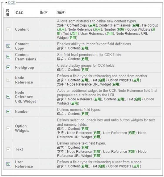 如图所示,我安装了CCK,但是首先发现没有reference URL 字段,自己下载了该模块,安装成功,但是跟着视频学到FILE 字段的时候才发现我的CCK 很多东西都没有这是为什么呢?我的drupal 版本是:6.26。下载的CCK 是Recommended releases 6.x-2.9 ZIP(572.17KB)。