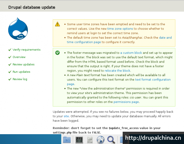 - jQuery update的默认是1.10,但是管理页面要降低版本,我选1.7通过,否则管理页面下某些链接不可点击,也可能是我的特例,一度怀疑是升级D7出错,后来在试验Nice Menus这个模块的时候,发先superfish无法选择?炉火要灭了。先上图兴奋下,就是update.php成功后的页面